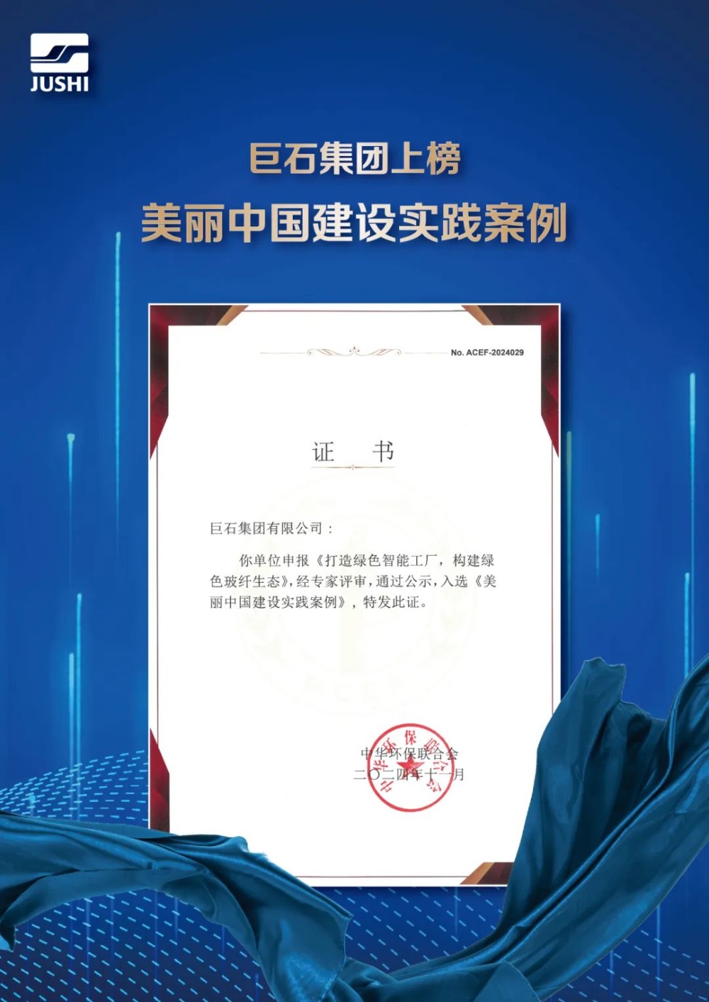 在中華環(huán)保聯(lián)合會揭曉的《美麗中國建設(shè)案例》名錄中,巨石集團憑借《打造綠色智能工廠,構(gòu)建綠色玻纖生態(tài)》的實踐案例,榮耀登榜。