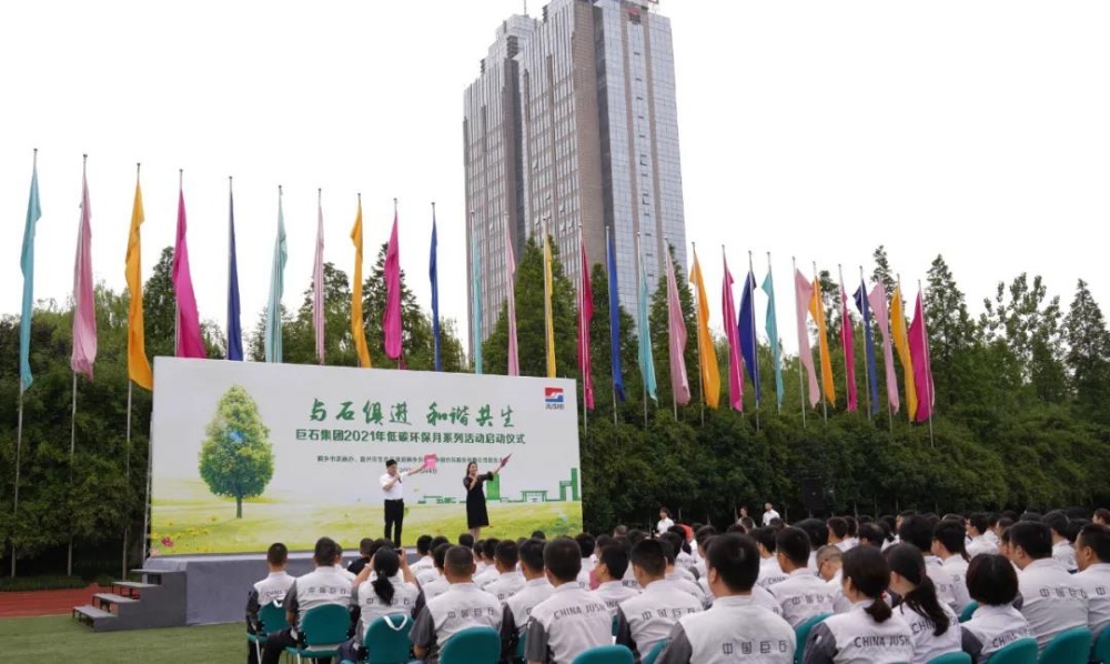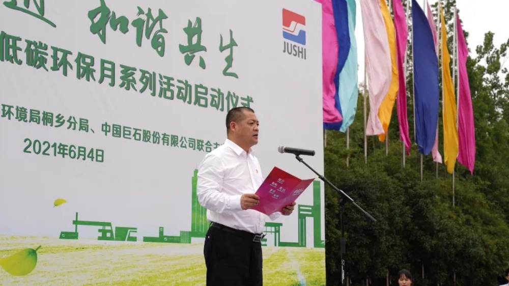 為深入學(xué)習(xí)貫徹習(xí)近平總書記“兩山”理論與“碳達峰、碳中和”的重要講話精神,做大做強巨石綠色品牌,讓每一位巨石人發(fā)揮自己的力量,從身邊小事做起,將低碳環(huán)保工作做到實處。6月4日下午,由桐鄉(xiāng)市美麗辦、嘉興市生態(tài)環(huán)境局桐鄉(xiāng)分局、中國巨石聯(lián)合舉辦的“與石俱進、和諧共生”低碳環(huán)保月系列活動正式啟動。嘉興市生態(tài)環(huán)境局桐鄉(xiāng)分局黨組書記、局長姚偉平,桐鄉(xiāng)經(jīng)濟開發(fā)區(qū)管委會副主任、高橋街道辦事處副主任趙弘毅,中國巨石黨委委員、副總裁,巨石集團副總裁曹國榮,巨石集團工會副主席沈士江參加活動。