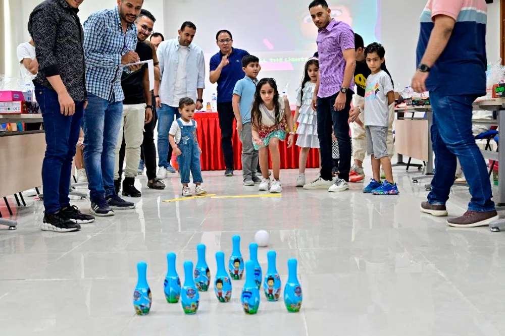 此外,家屬們參加公司準(zhǔn)備的親子活動,活動內(nèi)容包括趣味保齡球、禮物套圈圈等,派駐中方員工子女與埃方員工子女同臺競技,趣味十足。之后孩子們又前往游樂園游玩了碰碰車、卡丁車、旋轉(zhuǎn)木馬、室內(nèi)障礙穿越等娛樂項(xiàng)目活動。巨石埃及公司采購部經(jīng)理助理?xiàng)钛蟮膬鹤訔钭影?,在爸爸媽媽的陪伴下無比興奮:“我的爸爸是個(gè)大忙人,經(jīng)常不能陪我,今天他陪了我一整天,我很高興,而且我今天認(rèn)識了很多埃及的小朋友,我們一起玩了蕩秋千!”