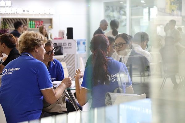 遠(yuǎn)道而來的海外客戶與張毓強(qiáng)進(jìn)行了交談,經(jīng)了解,該客戶從2001年便開始參加中國國際復(fù)材展,每年如期而至,與他的老伙伴——中國巨石,洽談業(yè)務(wù),開展新合作。