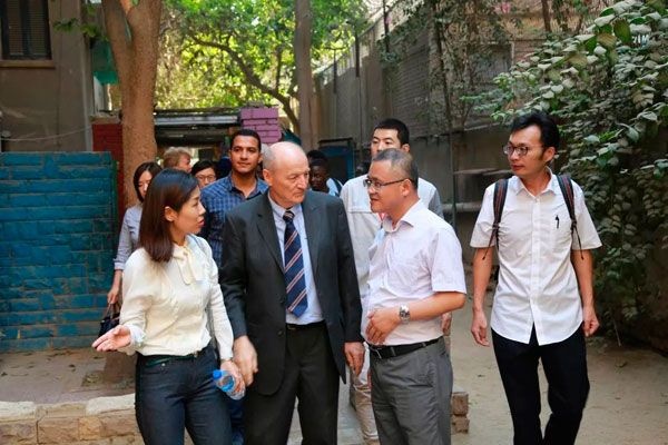 上午,巨石埃及公司黨支部書記、副總經(jīng)理錢志偉與總經(jīng)理助理索里曼等一行人驅(qū)車3小時來到開羅市麥阿迪區(qū)的非洲希望學校。