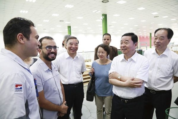 8月的埃及,驕陽似火,3日下午,正在埃及調(diào)研的國資委黨委書記郝鵬,冒著酷暑,驅(qū)車來到位于紅海之濱的巨石埃及年產(chǎn)20萬噸玻璃纖維生產(chǎn)基地實(shí)地調(diào)研黨建工作、生產(chǎn)經(jīng)營和企業(yè)發(fā)展情況。中國建材集團(tuán)黨委書記、董事長宋志平陪同調(diào)研,中國巨石黨委副書記、副總裁周省霖?zé)崆榻哟?/p>
