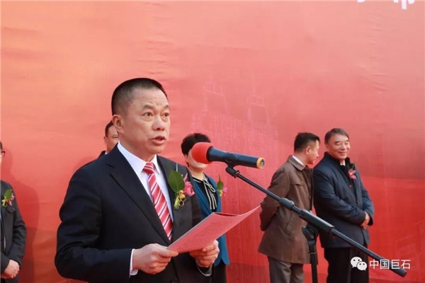 簽約儀式結(jié)束后,各級(jí)領(lǐng)導(dǎo)馬不停蹄來到開工儀式現(xiàn)場。中國建材集團(tuán)董事長、黨委書記宋志平宣布開工。