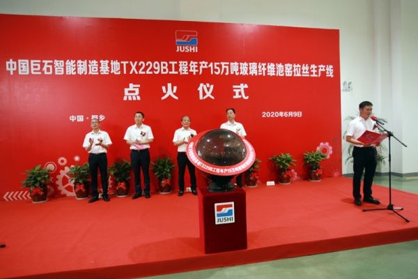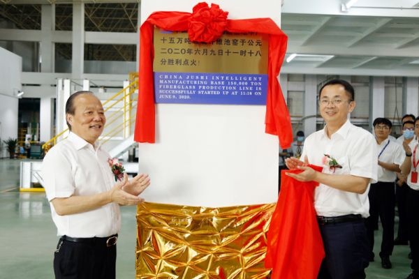 6月9日,中國(guó)巨石新材料智能制造基地年產(chǎn)15萬(wàn)噸玻璃纖維生產(chǎn)線勝利點(diǎn)火,上午11:18,中國(guó)巨石總裁、巨石集團(tuán)董事長(zhǎng)兼CEO張毓強(qiáng)為池窯點(diǎn)火,并與楊國(guó)明總裁一同為池窯揭牌。