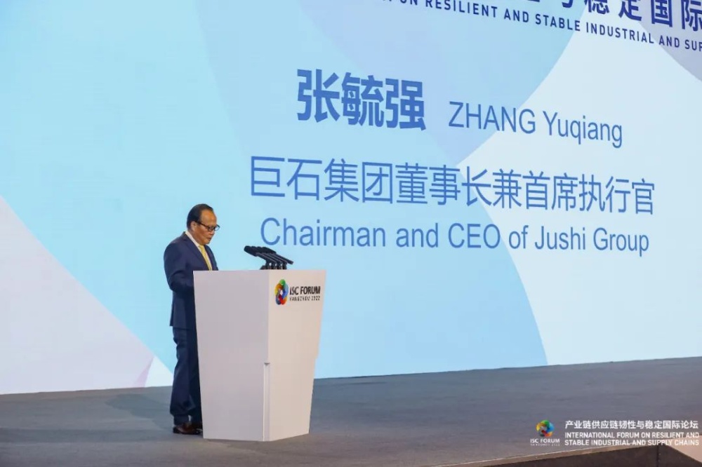 中國巨石總裁張毓強(qiáng)在產(chǎn)業(yè)鏈供應(yīng)鏈韌性與穩(wěn)定國際論壇上作主題發(fā)言