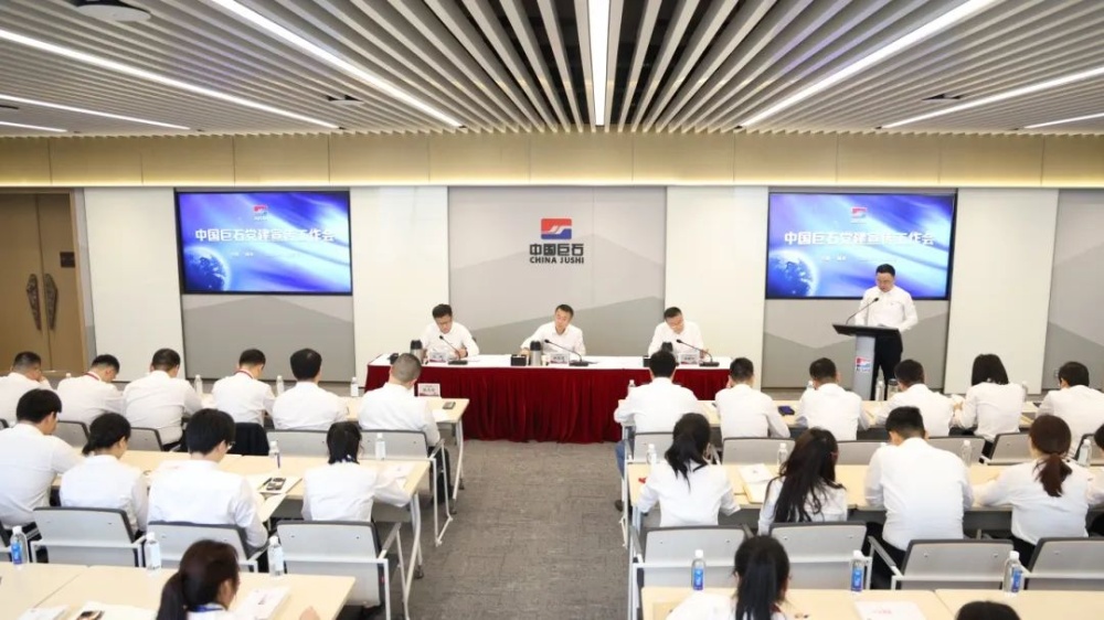中國巨石黨委書記、總裁楊國明出席會議并作總結講話,黨委副書記、工會主席邵曉陽傳達上級單位黨建宣傳工作要求,副總裁沈林主持會議。公司本部各支部書記、第一負責人以及黨建宣傳員隊伍現場參會,九江公司、成都公司、淮安公司通過視頻連線參會。