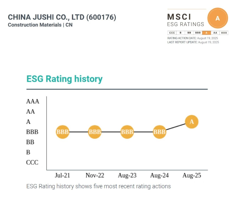 突破!中國巨石MSCI ESG評級躍升為A級!