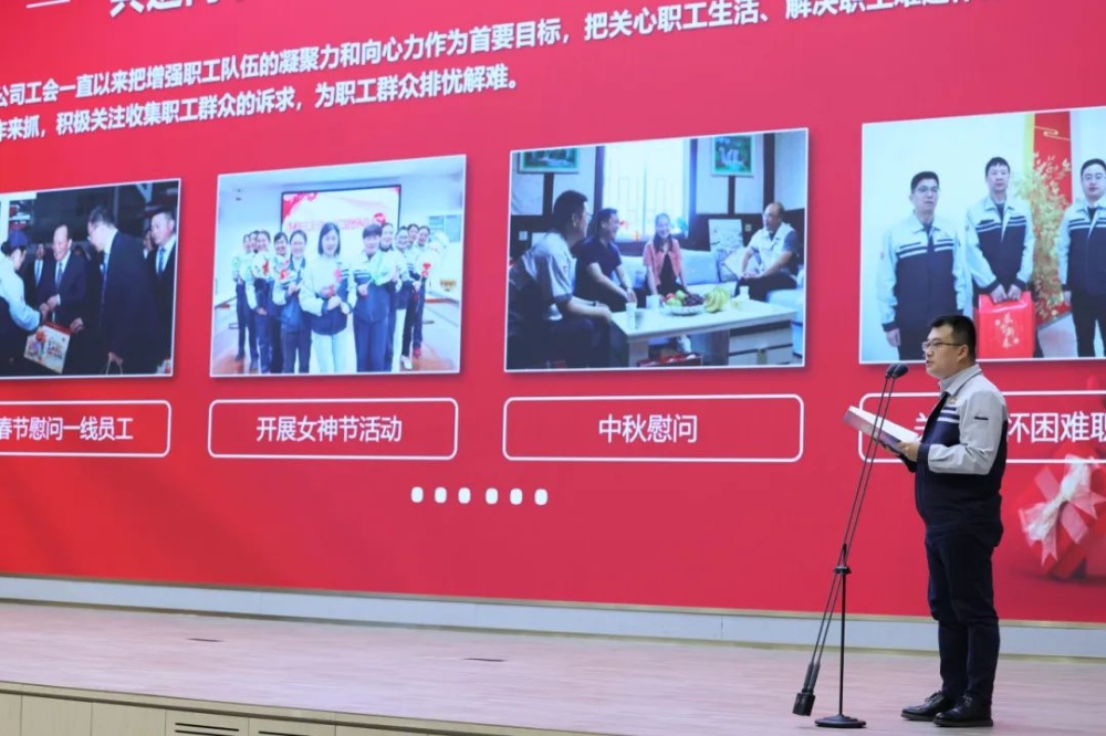中國巨石行政管理總監(jiān)、工會副主席廖信林回顧總結(jié)了公司2023年的愛心、暖心為民服務(wù)和社會公益工作情況。