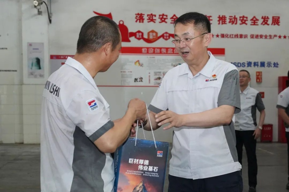 一分廠因為化工原料生產(chǎn)的特殊性,還存在部分高溫作業(yè)崗位,而暑氣籠罩之下員工們依舊堅守生產(chǎn)崗位。楊國明總裁反復(fù)叮囑務(wù)必勞逸結(jié)合,保障自身健康與工作安全,在堅守崗位的同時照顧好自己。
